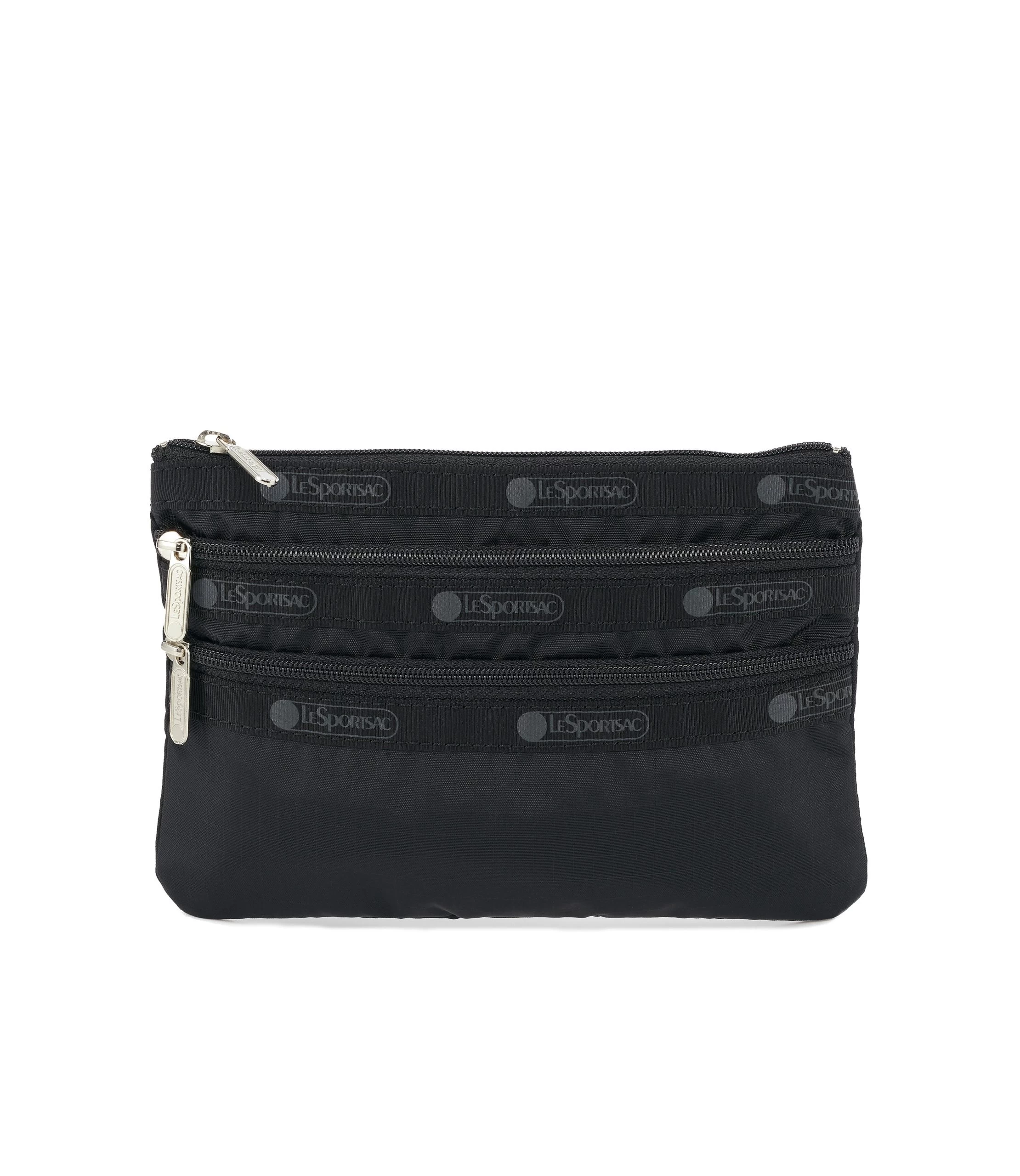 The 3-Zip Cosmetic bag is the perfect travel accessory. You can easily organize all of your beauty products like lipstick, eyeliner, mascara and foundation into different compartments. This zip makeup bag also works as a wallet to hold all of your necessary travel accessories. Pack your passport, currencies and personal care items for the perfect on the go organizer.