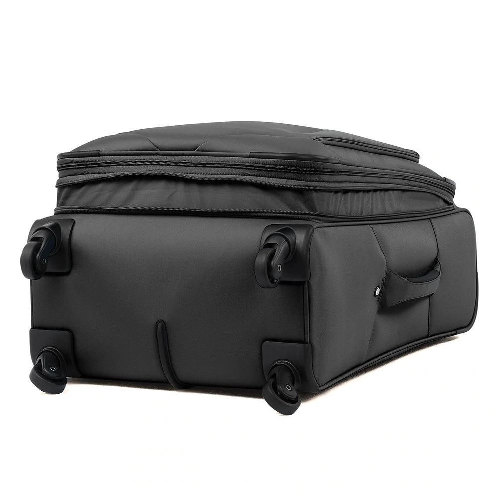 - Roomy main compartment has tapered expansion of up to 2″on spinners, maximizing packing flexibility while keeping the center of gravity low