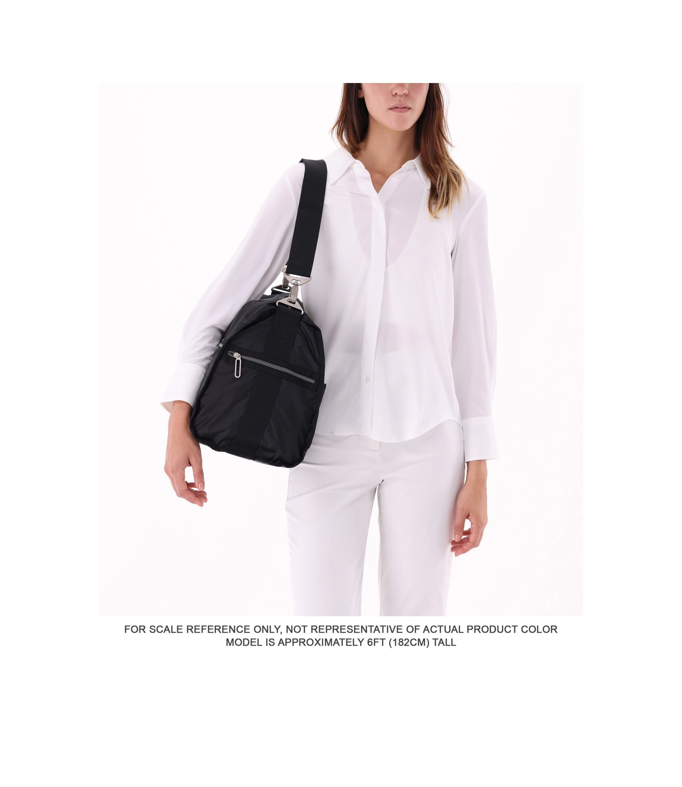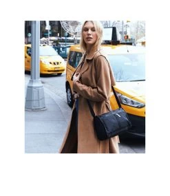 Zip main closure with dual zipper pulls, 7.5in (19cm) Pinched short handle drop, Removable/adjustable crossbody strap (Max. 42in/107cm), Exterior front zip closure pocket, Exterior back panel features one open pocket and one zip closure pocket, Two exterior side zip closure pockets, Interior back wall zip closure pocket, Three interior front wall open pockets