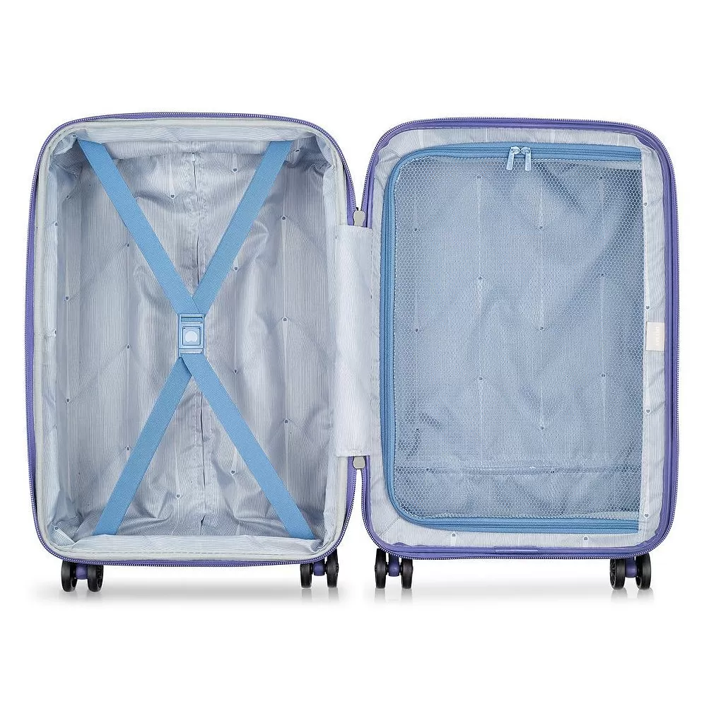 The main compartment is expandable for maximum packing flexibility. This feature is great when packing souvenirs on return journeys ! The interior includes two full packing compartments with a mesh divider and elastic tie-down straps to secure your belongings.