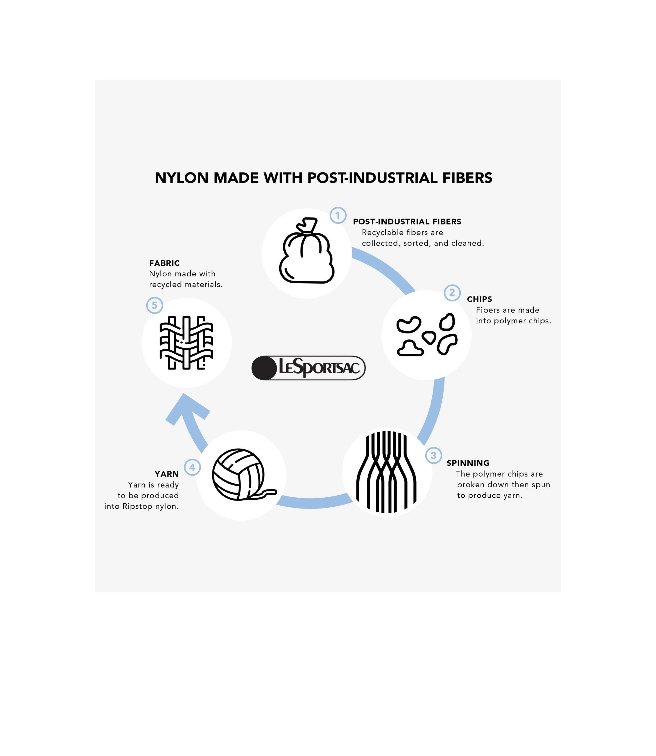 Made with recycled content: The ripstop body fabric used for this product is made from recycled post-industrial fibers.