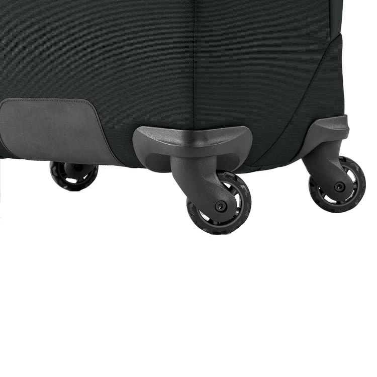 - Heavy-duty multi-directional spinner wheels, protective wheel housing and an impact-resistant handle increase this bag’s durability making transporting heavy loads a breeze