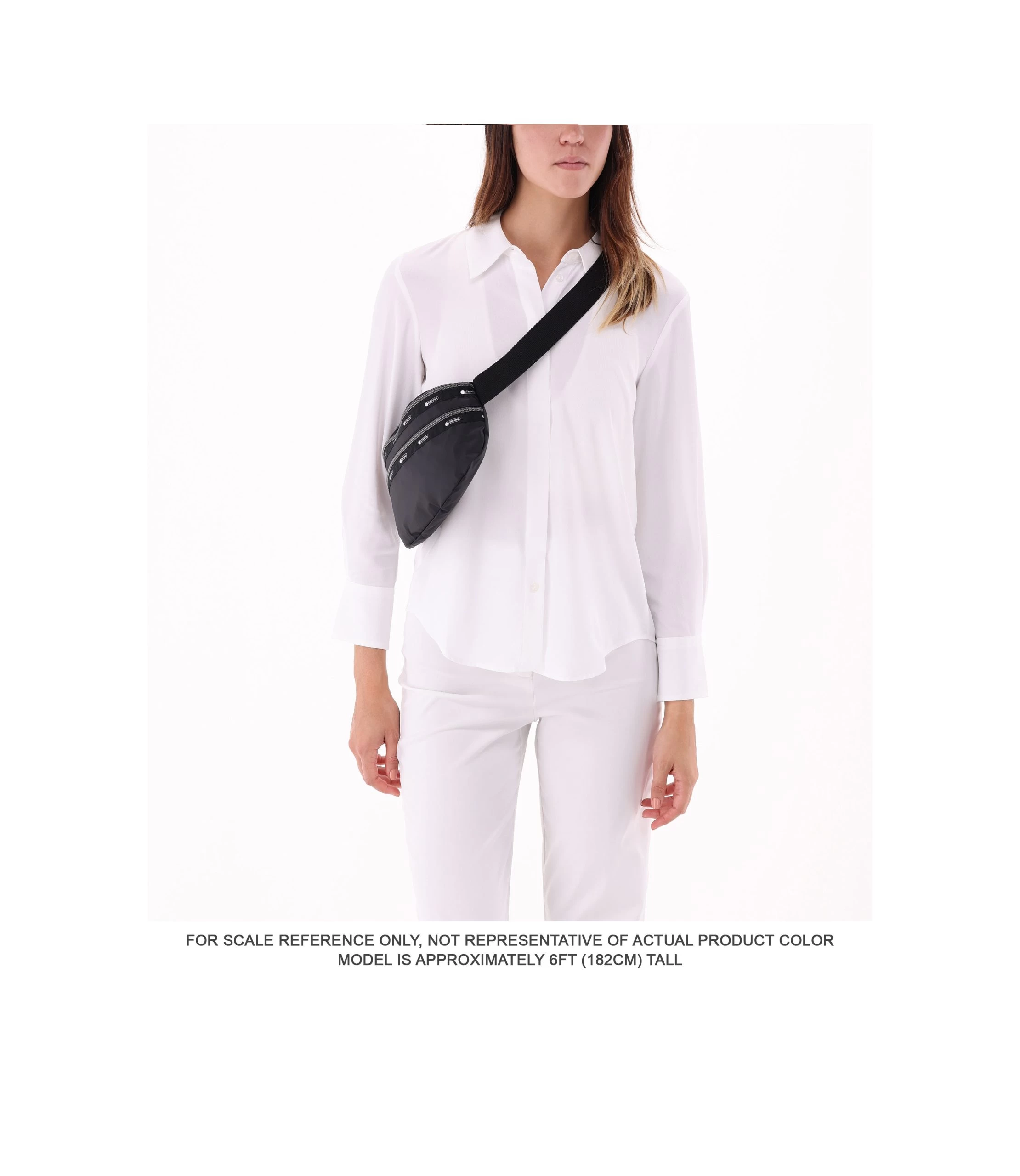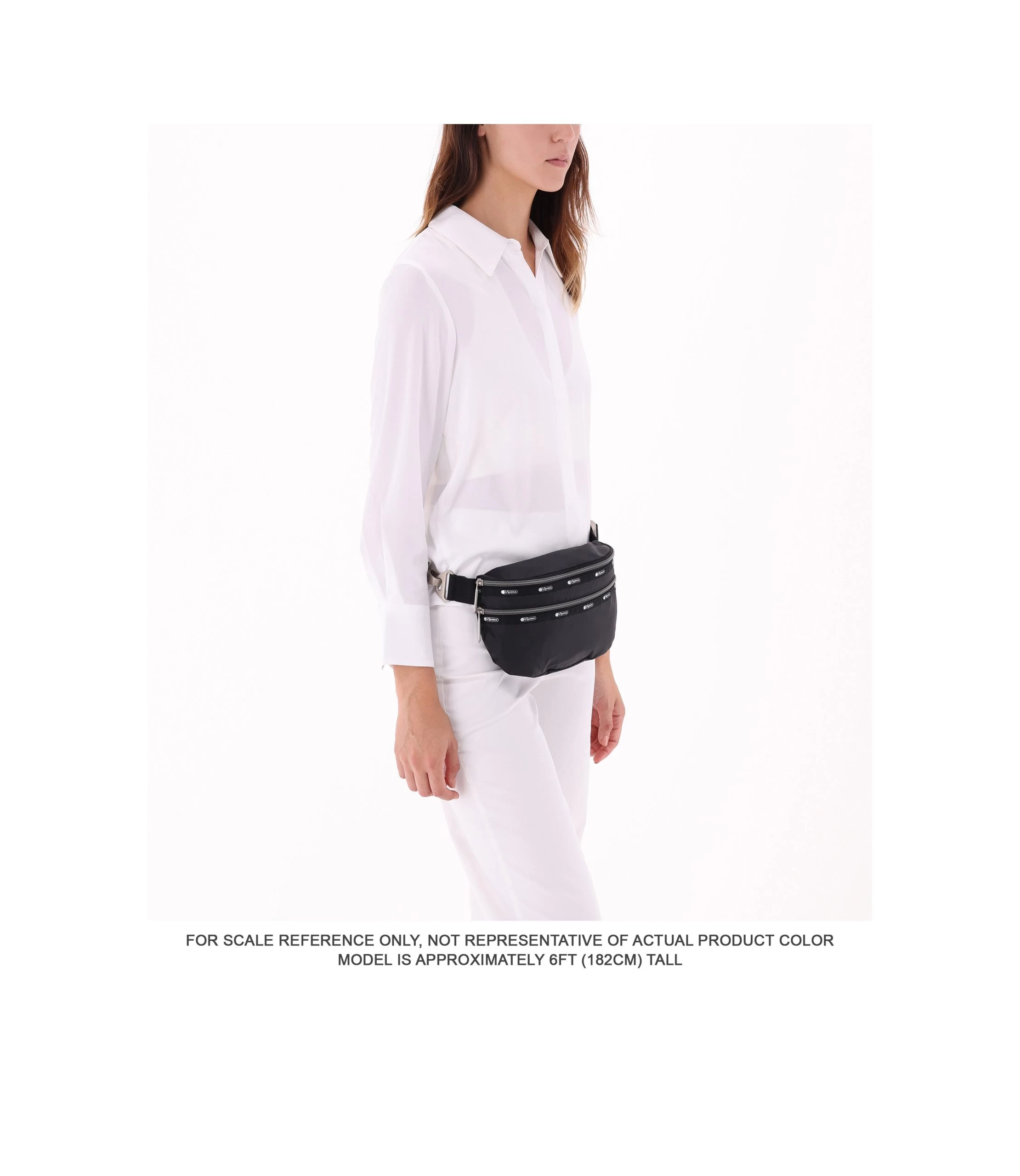 Zip main closure, Exterior front zip pocket, 1.5in/3.8cm wide adjustable waist belt (Max length including bag body and buckle: 48.4in/123cm, Min length: 32.8in/83.5cm)