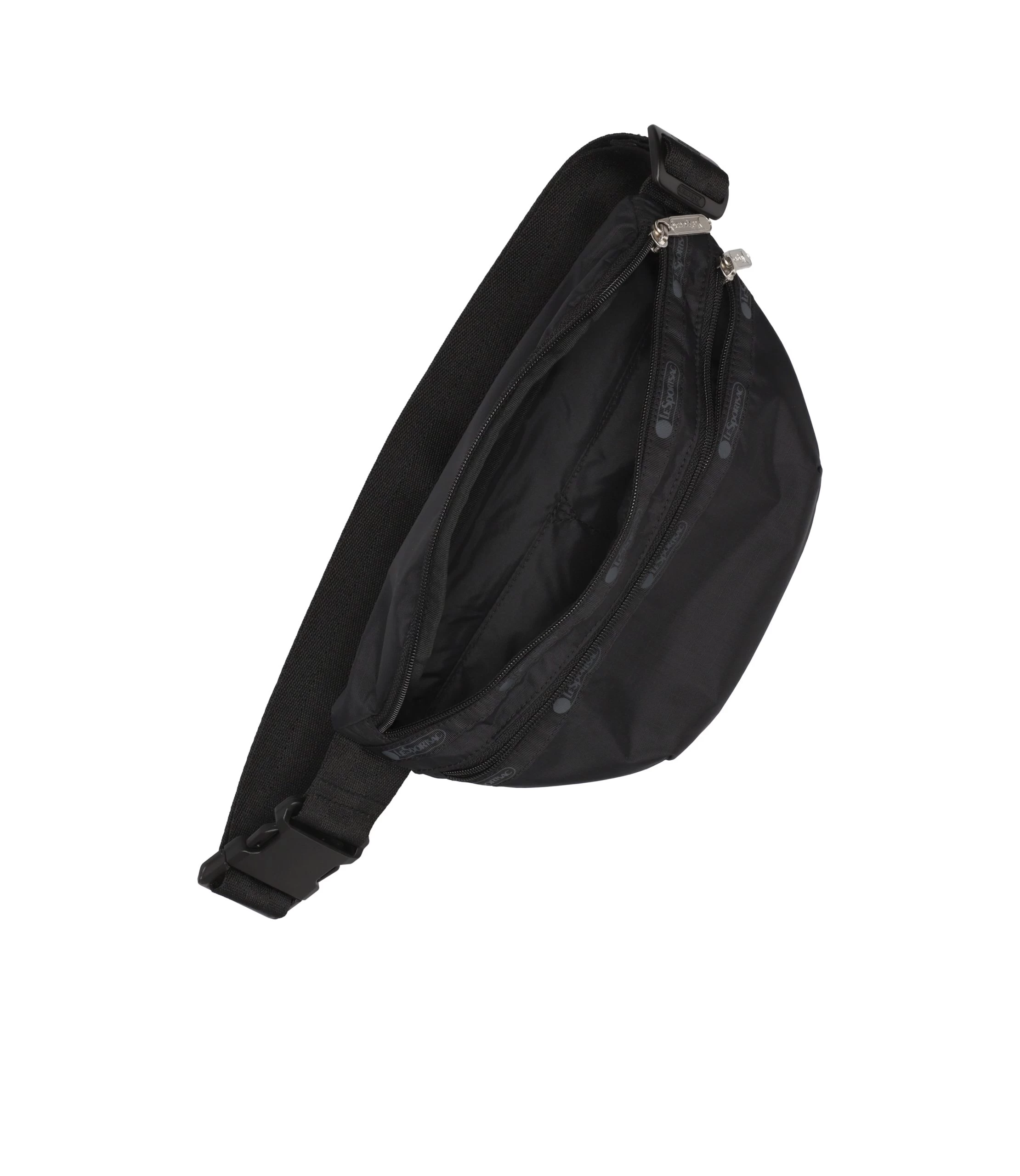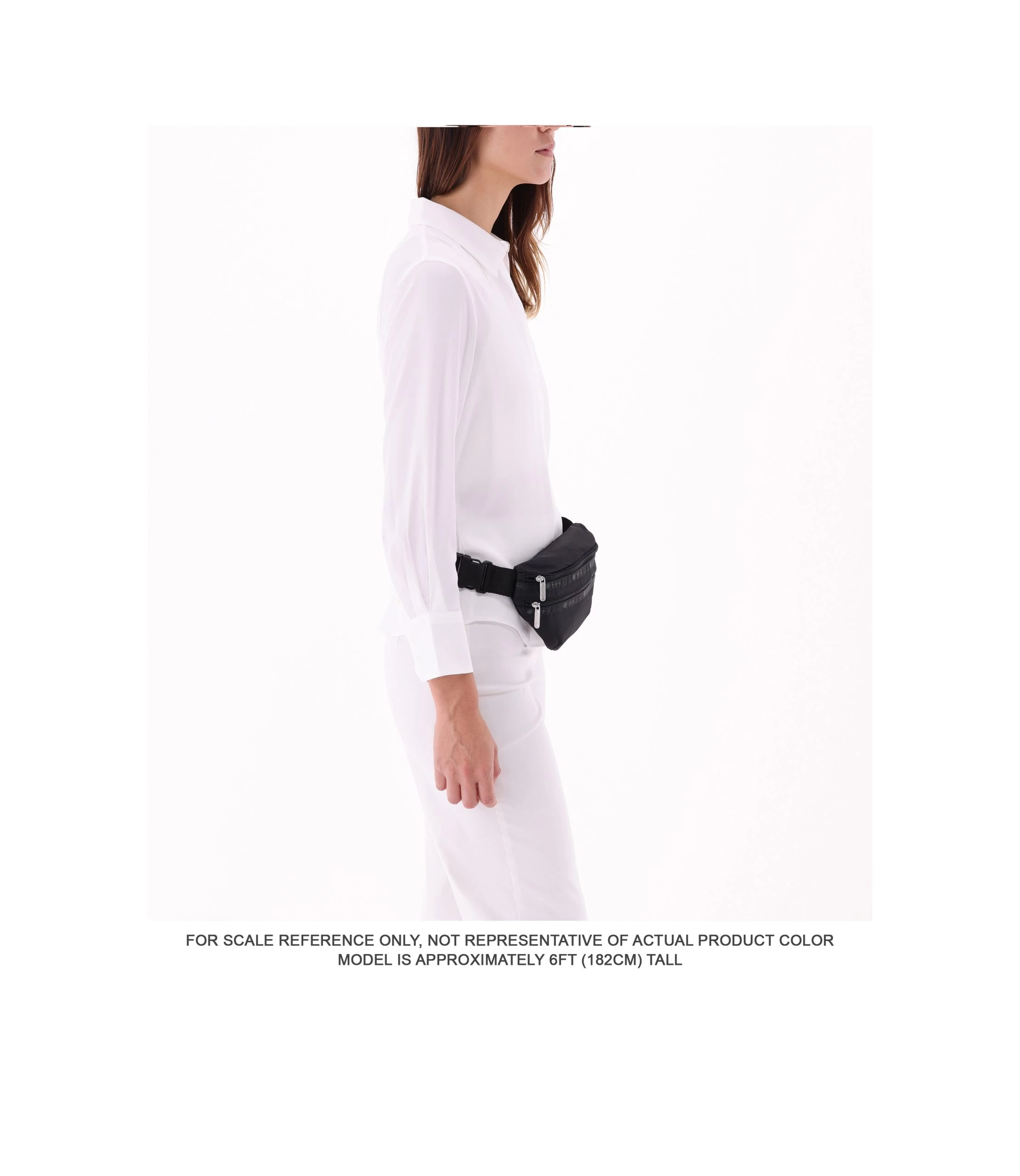 Zip main closure, Exterior front zip pocket, Two interior back wall open pockets, 1.5in/3.8cm wide adjustable belt strap (Max length including bag: 44.5 in/113cm, Min length including bag: 29.5 in/74.9 cm)