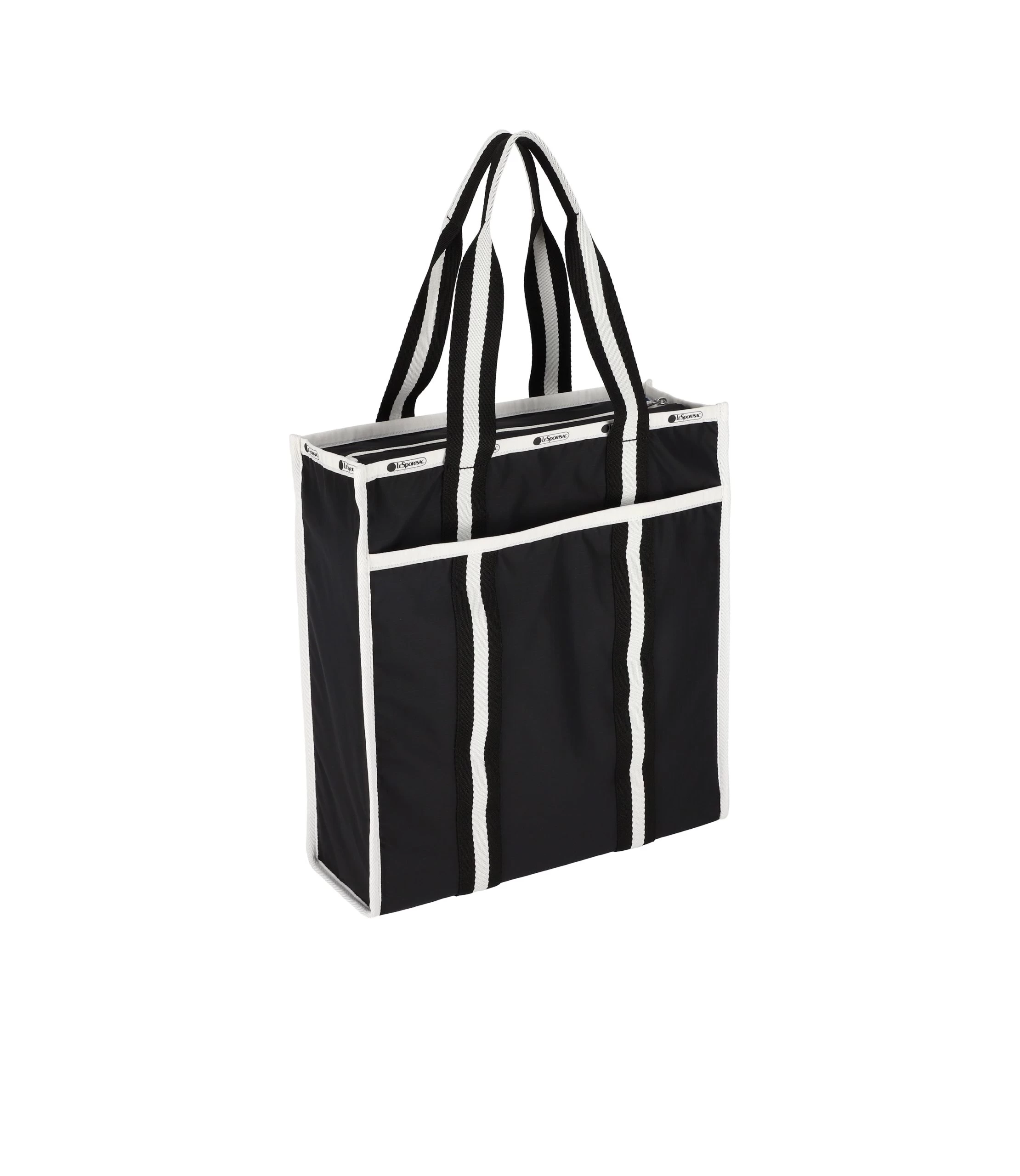 Zip main closure, Exterior back zip pocket, Interior back wall large open pocket, 1.5in/3.8cm wide pinched top handles (Drop: 9in/23cm, Length: 21.3in/54 cm)