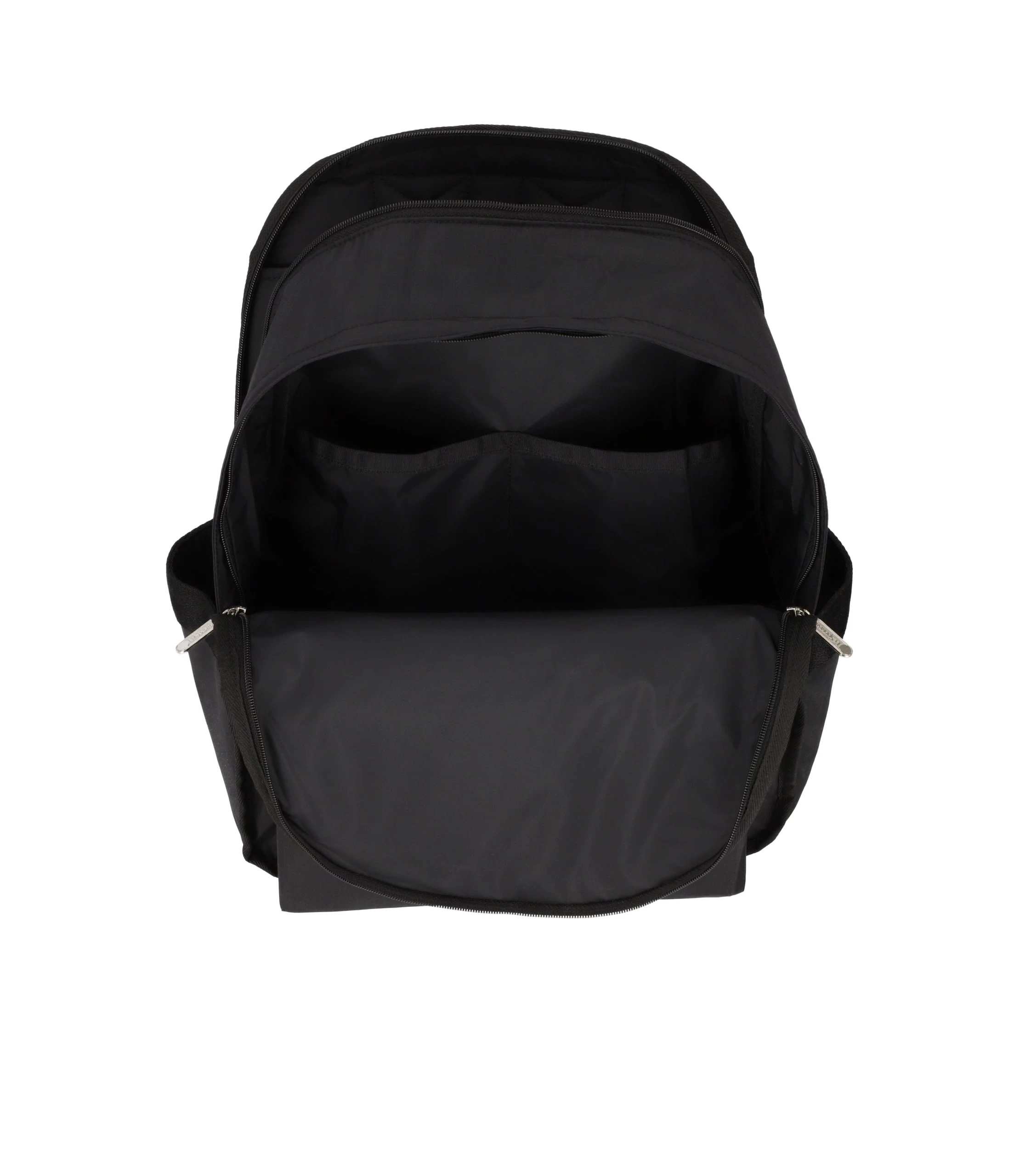 Features two zip closure compartments with dual zipper pulls, 1in/2.5cm top loop handle (Drop: 2.2in/5.5cm), Adjustable padded shoulder straps (Min Length: 18.5in/47cm, Max Length: 36.5/92.7cm), Exterior front zip closure pocket, Exterior back panel features a zip closure cell phone pocket on the side, Two exterior side open top pockets, Interior of front compartment features two open pockets on the interior back wall, Interior of back compartment features a laptop pocket with Velcro tab closure (for 13in laptops) and a combination zip/open pocket (on front of the laptop pocket)