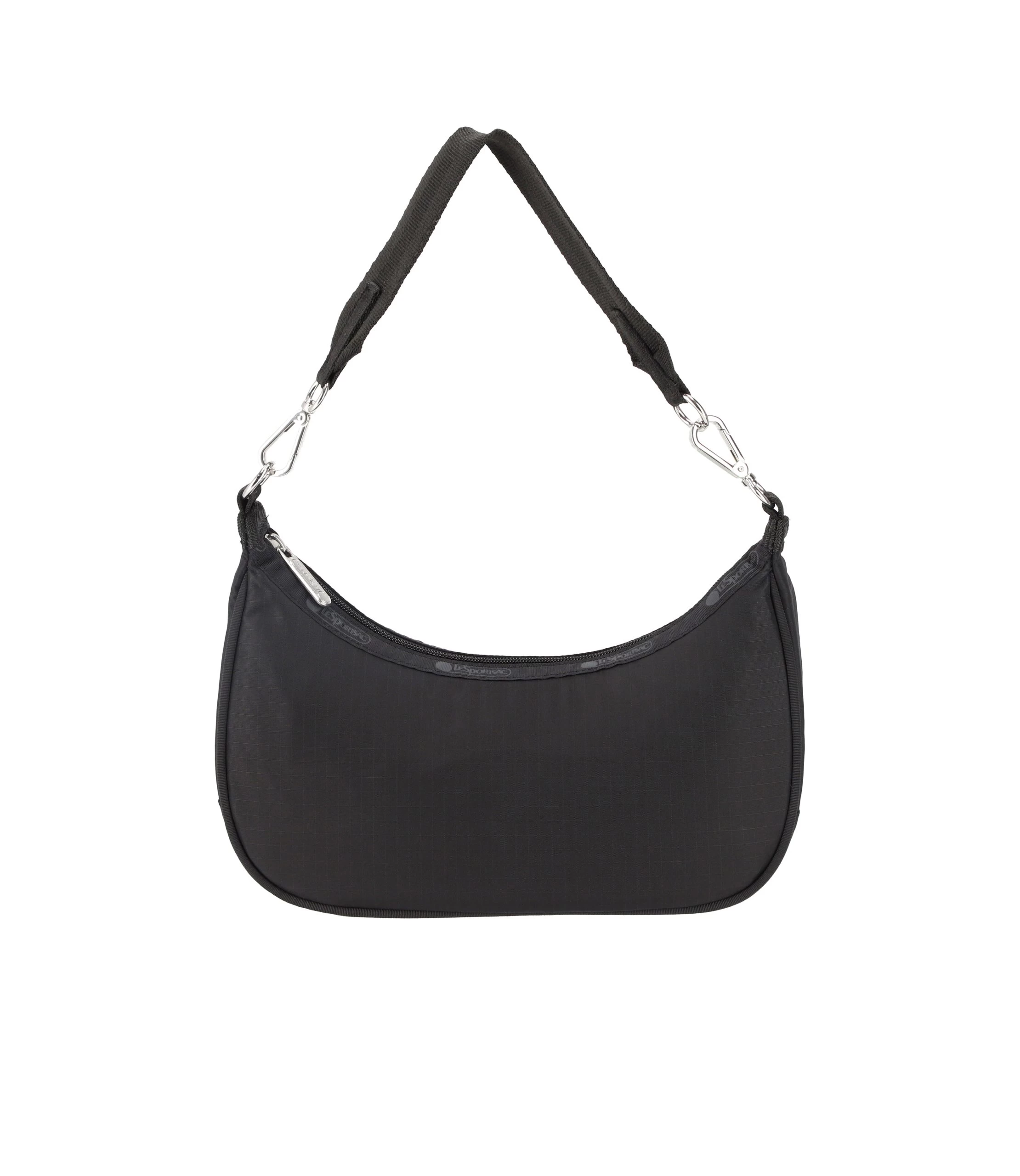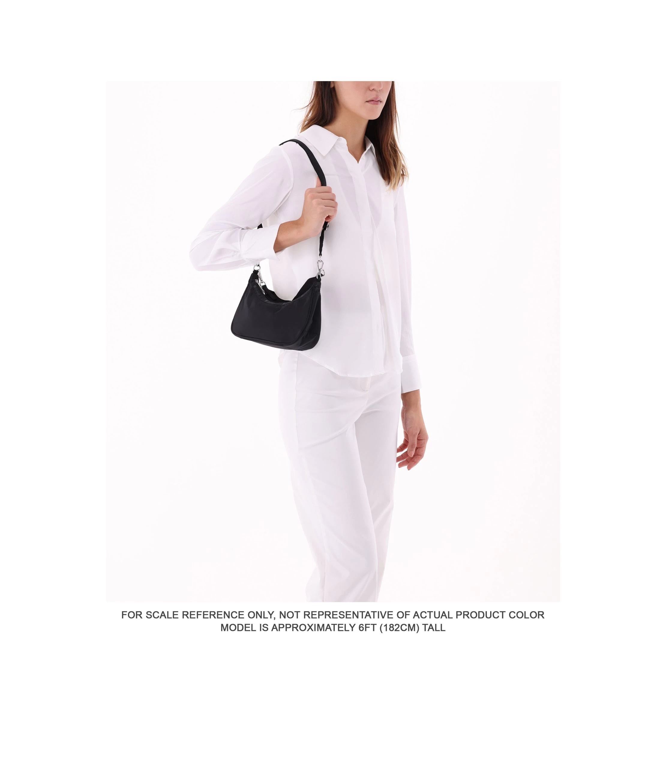 Zip top main closure, Interior back wall open pocket, Two detachable strap options: Short Strap – 1.5in/3.8cm wide non-adjustable strap (drop of 8.46 in/21.5 cm and a length of 15in/38 cm) and Long Strap – 1in/2.5cm wide adjustable/detachable crossbody strap (min length: 24.8 in/63 cm and max length: 42 in/108 cm, ), Metal hardware