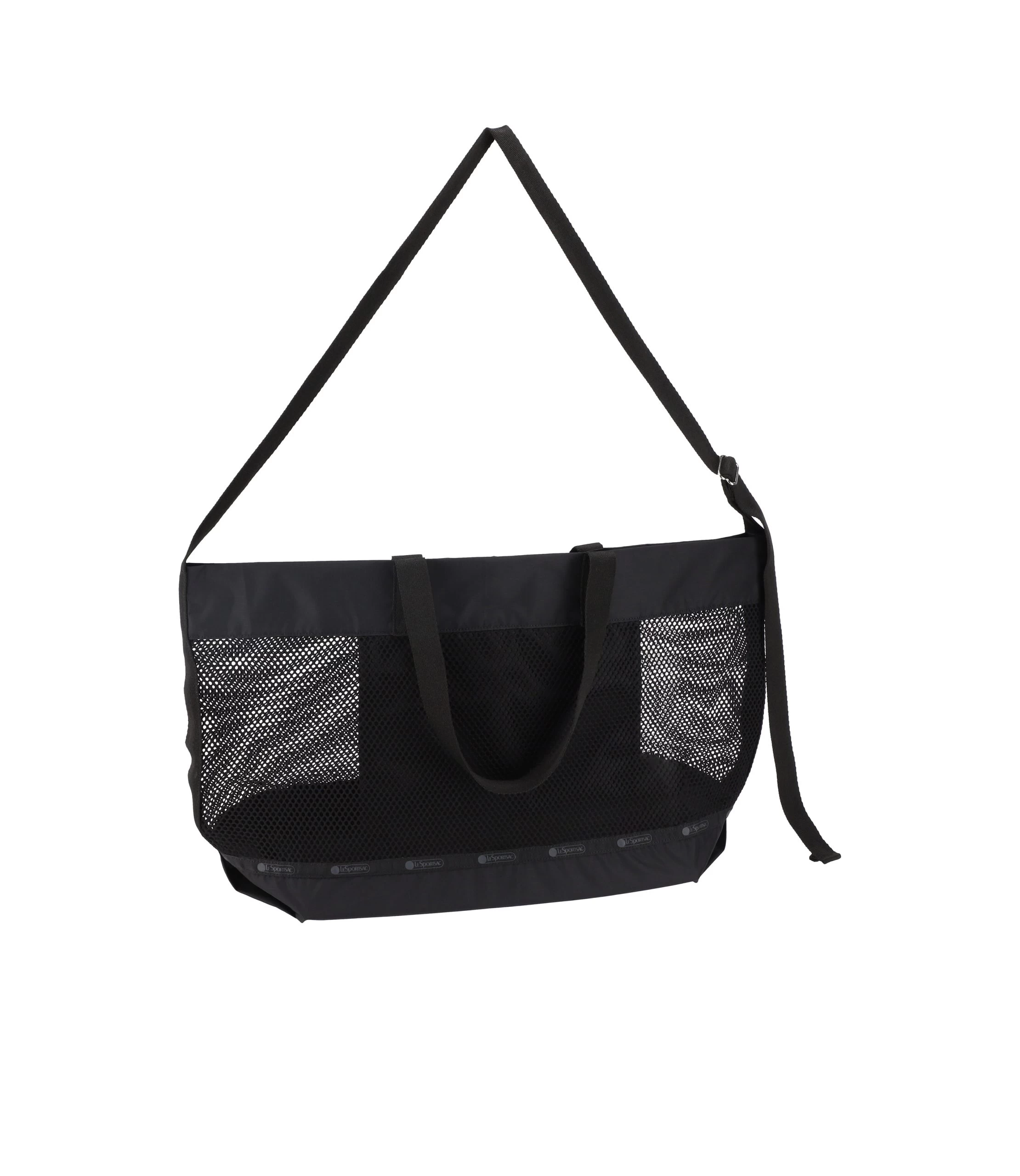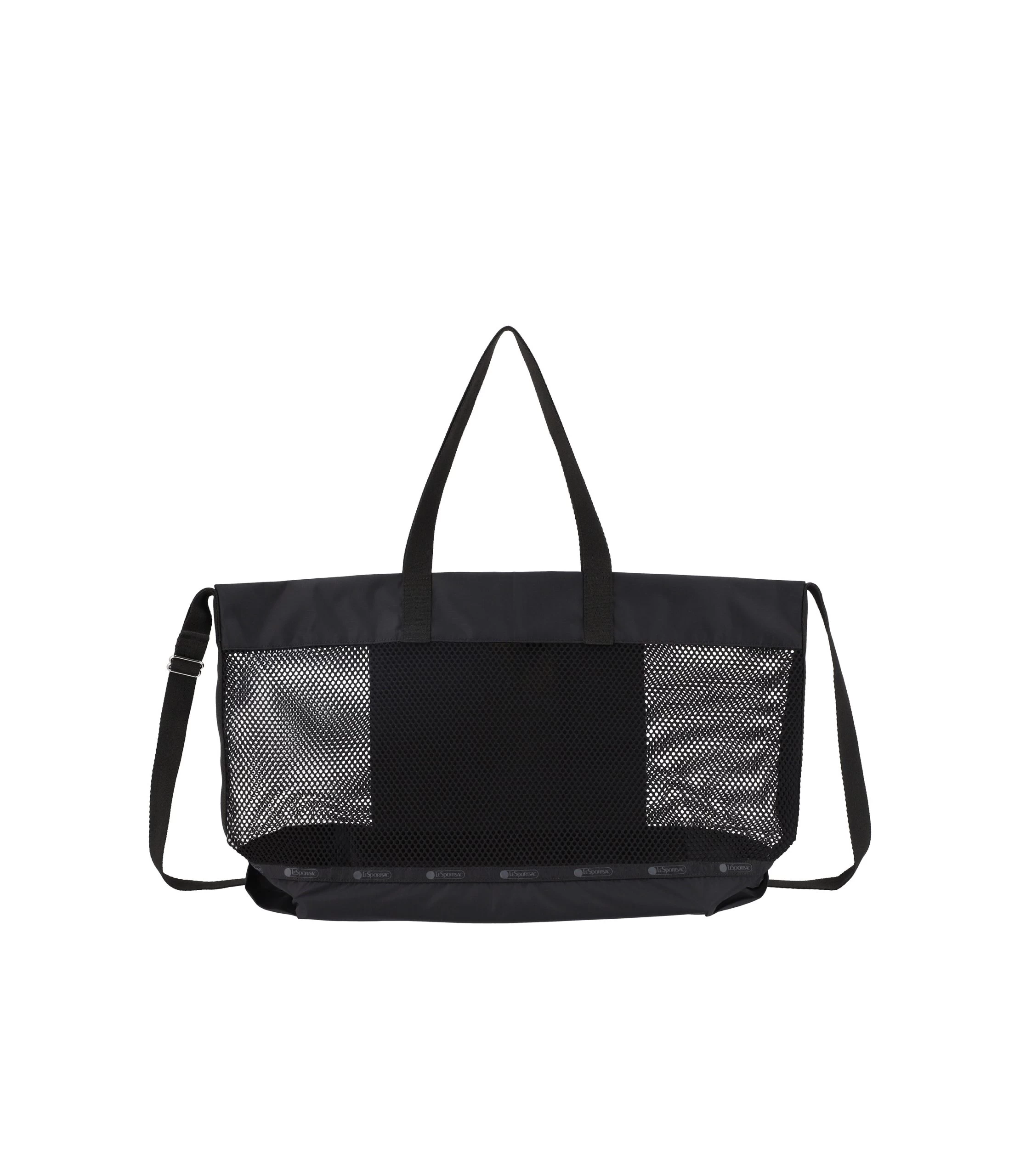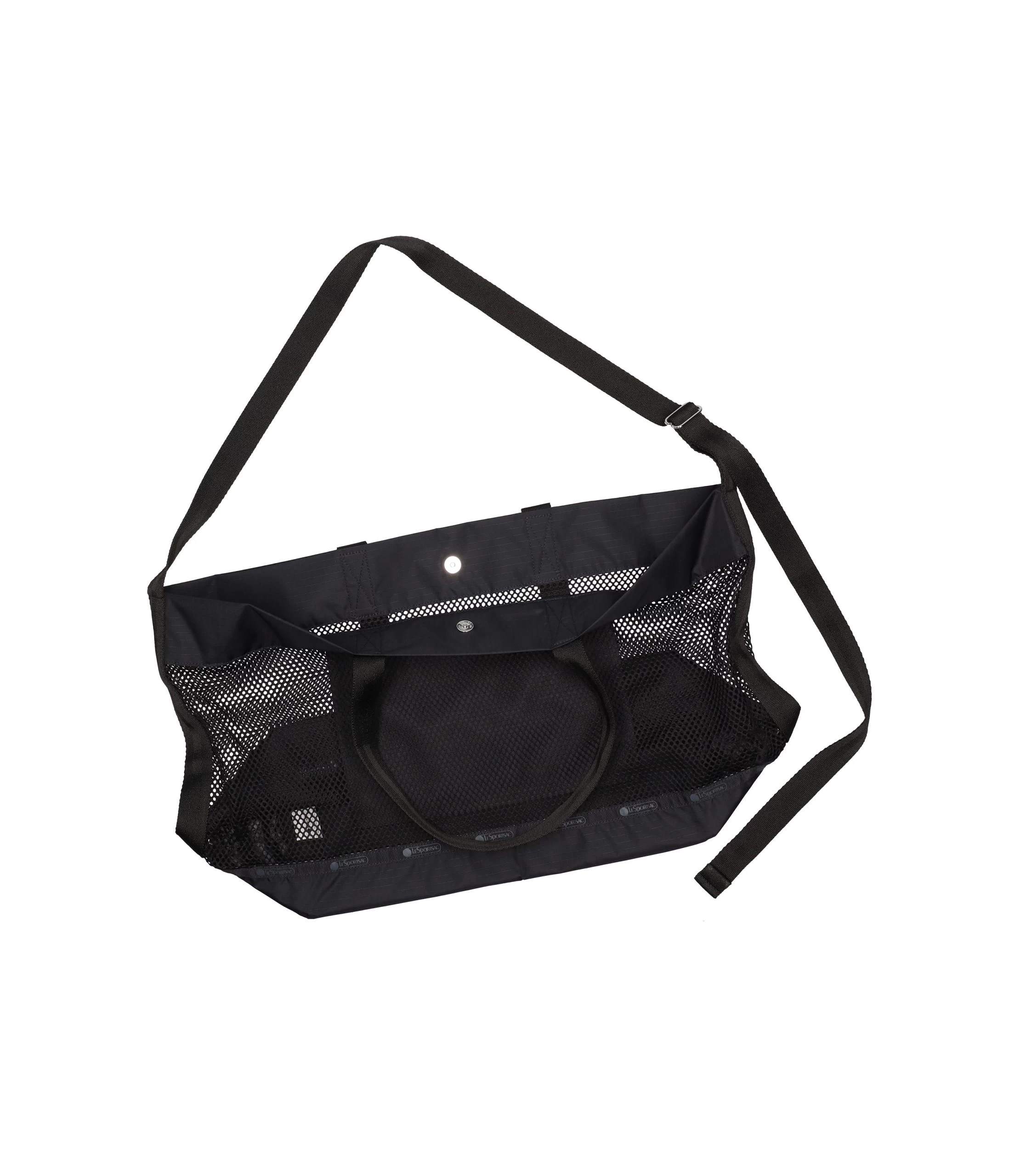 Open top with magnetic snap, Interior back wall ripstop hanging zip pocket, 1in/2.5cm wide top handles (Drop 8.6in/21.8cm), 1in/2.5cm adjustable shoulder strap (Max Length: 51in/130cm)
