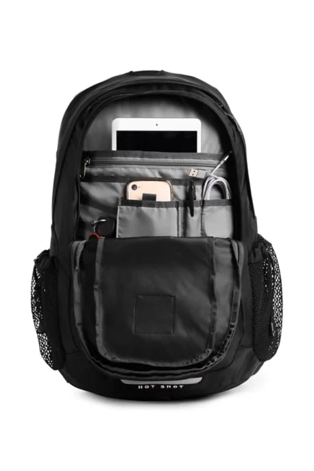 - Front organization compartment with fleece-lined tablet sleeve and a variety of pocketing options